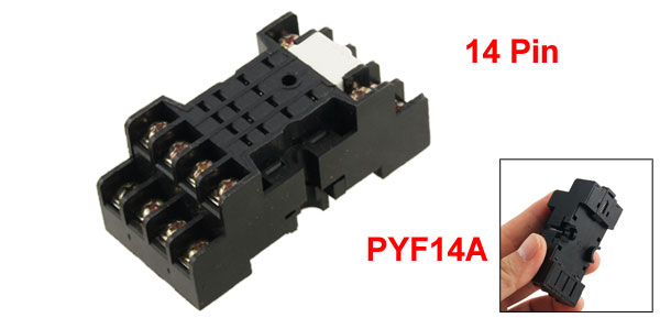 Product Name Relay Socket Base Model PYF14A Pin Number 14 Total Size (Approx.) 65 x 30 x 25mm/2.6” x 1.2" x 1"(L*W*T) Main Color Black Material Plastic Weight 46g Package Content 1 x Relay Socket Base - Reviews