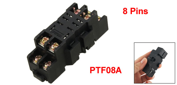 Product Name Relay Socket Base Model PTF08A Pin Number 8 Total Size (Approx.) 71 x 29 x 27mm/2.8" x 1.1" x 1.1“ (L*W*T) Main Color Black Material Plastic Weight 43g Package Content 1 x Relay Socket Base - Reviews