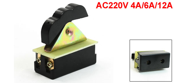 Product Name Electric Tool Switch Action Type DPST Technical Parameter AC 220V 4A/6A/12A Size 4.8 x 2.4 x 5cm/ 1.9" x 0.9" x 2" (L*W*H) Material Plastic & Metal Main Color Black Weight 40g Package 1 x Electric Tool Switch - Reviews