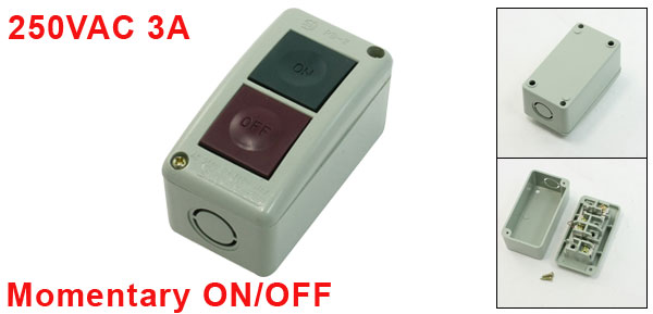 Product Name Power Push Button Switch Model PB-2 Type Momentary ON/OFF Voltage & Current 250V AC, 3A 600Vmax Total Size (Approx.) 7.7 x 4 x 4cm / 3" x 1.6" x 1.6" (L*W*H) Color Gray External Material Plastic Weight 70g Package Content 1 x Power Push Button Switch - Reviews