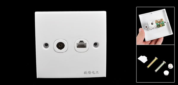 Product Name TV Computer Socket Wall Plate Fit Plug TV Aerial, Computer Cable Model Type RJ 45 Socket, PAL Socket Shape Square Material Plastic, Electronic Parts Color White Size 8.6 x 8.6 x 3.2cm/3.4" x 3.4" x 1.3" (L*W*T) Screws Dia 3.8mm/ 0.15" Power AC 250V, 10A Weight 46g Package Content 1 x TV Computer Socket Wall Plate