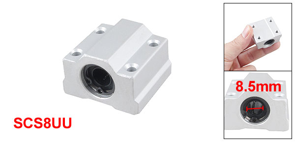 Product Name Linear Motion Ball Bearing Model SCS8UU Material Metal, Rubber Inner Diameter 8.5mm/ 0.33" Screw Hole Diameter 4mm/ 5/32" Pitch 18 x 23mm/ 0.71" x 0.91"(L*W) Overall Size 30 x 34 x 22mm/ 1.2" x 1.3" x 0.87"(L*W*H) Main Color Silver Tone Net Weight 47g Package Content 1 x Linear Motion Ball Bearing - Reviews