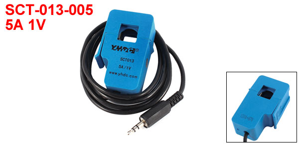 Item Name Split-core Current Transformer Model Number SCT-013-005 Rated Input Current 5A Rated Input Voltage 1V Output Plug 3.5mm Working Temperature -25-70°C Dielectric Strength 6000V AC/1min Cable Length 1M/3.3Ft Opening Size 13 x 13mm/0.5" x 0.5"(L*W) Total Size 5.7 x 3.2 x 2.2cm/2.2" x 1.2" x 0.87"(L * W * H) Case Material Plastic Core Material Ferrite Color Black,Blue Weight 71g Package Content 1 x Split-core Current Transformer