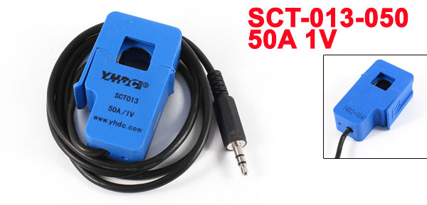 Item Name Spilt-core Current Transformer Model Number SCT-013-050 Rated Input Current 50A Rated Input Voltage 1V Output Plug 3.5mm Working Temperature -25-70°C Dielectric Strength 6000V AC/1min Cable Length 1M/3.3Ft Opening Size 13 x 13mm/0.5" x 0.5"(L*W) Total Size 5.7 x 3.2 x 2.2cm/2.2" x 1.2" x 0.87"(L * W * H) Case Material Plastic Core Material Ferrite Color Black,Blue Weight 71g Package Content 1 x Spilt-core Current Transformer