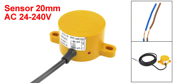 Product Name Proximity Switch Model SD-2020A Theory Inductive Sensor Wire Type 2 Wire Type (Brown, Blue) Switch Appearance Type Cylinder Type Output Type NO(Normal Open) Sensor Distance 20mm Supply Voltage AC 24-240V Output Current(Max) 300 mA Detect Object Iron Column Sensor Diameter 33mm/1.3" Total Size 47 x 32mm/ 1.9" x 1.2" (L*D) Cable Length 2m/6.7ft External Material Plastic, Metal Color Yellow, Black Net Weight 150g Package Content 1 x Proximity Switch - Reviews
