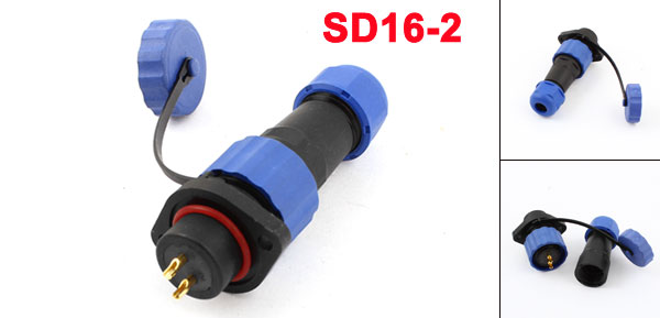 Product Name Waterproof Aviation Connector Model SD16-2 Waterproof Level IP68 Rated Current / Voltage AC 500V/30A Withstand Voltage AC 1500V Panel Cutout Diameter 16mm Cable Range 4-8mm Terminals 2 Pins Total Size 23 x 78mm / 0.9" x 3" (D*L) Flange Hole Spacing 25mm / 1" Material Plastic, Brass Color Blue, Black, Gold Tone Weight 28g Package Content 1 x Waterproof Aviation Connector - Reviews