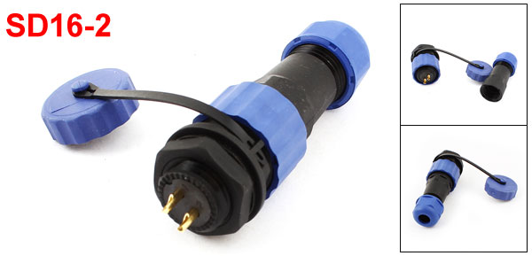 Product Name Waterproof Aviation Connector Model SD16-2 Waterproof Level IP68 Rated Current / Voltage AC 500V/30A Withstand Voltage AC 1500V Panel Thread Diameter 16mm Cable Range 4-8mm Terminals 2 Pins Total Size 23 x 80mm /0.9" x 3" (D*L) Material Plastic, Brass Color Blue, Black, Gold Tone Weight 28g Package Content 1 x Waterproof Aviation Connector - Reviews