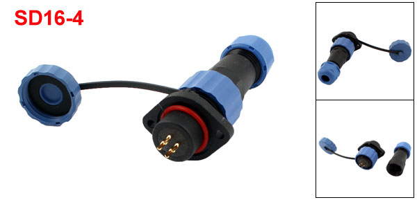 Product Name Waterproof Aviation Connector Model SD16-4 Waterproof Level IP68 Rated Current / Voltage AC 500V/30A Withstand Voltage AC 1500V Panel Cutout Diameter 16mm Cable Range 4-8mm Terminals 4 Pins Total Size 23 x 78mm / 0.9" x 3" (D*L) Flange Hole Spacing 25mm / 1" Material Plastic, Brass Color Blue, Black, Gold Tone Weight 28g Package Content 1 x Waterproof Aviation Connector - Reviews
