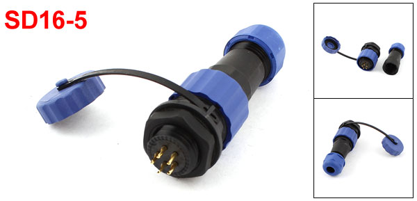 Product Name Waterproof Aviation Connector Model SD16-5 Waterproof Level IP68 Rated Current / Voltage AC 500V/15A Withstand Voltage AC 1500V Panel Thread Diameter 16mm Cable Range 4-8mm Terminals 5 Pins Total Size 23 x 80mm /0.9" x 3" (D*L) Material Plastic, Brass Color Blue, Black, Gold Tone Weight 28g Package Content 1 x Waterproof Aviation Connector - Reviews