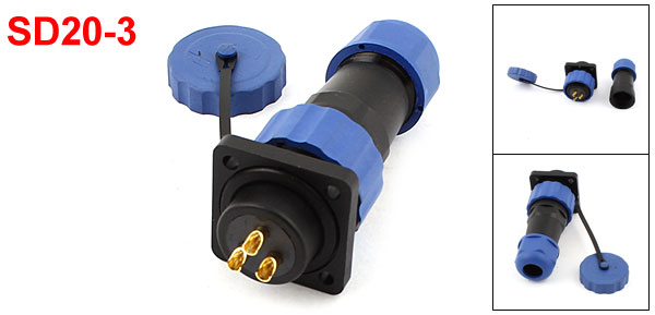 Product Name Waterproof Aviation Connector Model SD20-3 Waterproof Level IP68 Rated Current / Voltage AC 500V/30A Withstand Voltage AC 1500V Panel Cutout Diameter 20mm Cable Range 7-11mm Terminals 3 Pins Total Size 28 x 85mm / 1.1" x 3.3" (D*L) Flange Hole Spacing 22 x 22mm / 0.87" x 0.87" (L*W) Square Size 28 x 28mm / 1.1" x 1.1" (L*W) Material Plastic, Brass Color Blue, Black, Gold Tone Weight 40g Package Content 1 x Waterproof Aviation Connector - Reviews