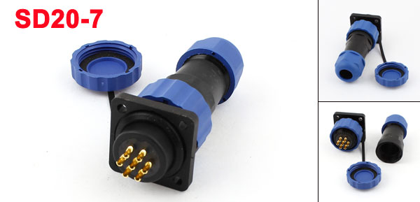 Product Name Waterproof Aviation Connector Model SD20-7 Waterproof Level IP68 Rated Current / Voltage AC 500V/15A Withstand Voltage AC 1500V Panel Cutout Diameter 20mm Cable Range 7-11mm Terminals 7 Pins Total Size 28 x 85mm / 1.1" x 3.3" (D*L) Flange Hole Spacing 22 x 22mm / 0.87" x 0.87" (L*W) Square Size 28 x 28mm / 1.1" x 1.1" (L*W) Material Plastic, Brass Color Blue, Black, Gold Tone Weight 40g Package Content 1 x Waterproof Aviation Connector - Reviews