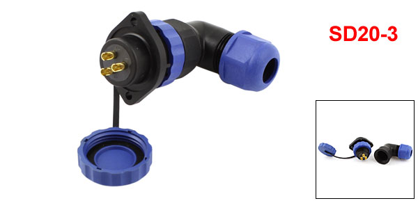 SD20 3 Pin Flanged Elbow Waterproof Aviation Connector Plug Socket IP68