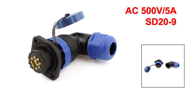 SD20 9 Pin Flanged Elbow Waterproof Aviation Connector Plug Socket IP68