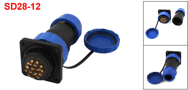 SD28 28mm 12 Pin Square Flange Waterproof Aviation Connector Plug Socket IP68