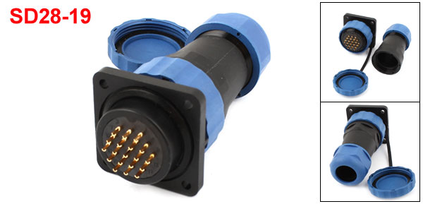 SD28 28mm 19 Pin Square Flange Waterproof Aviation Connector Plug Socket IP68