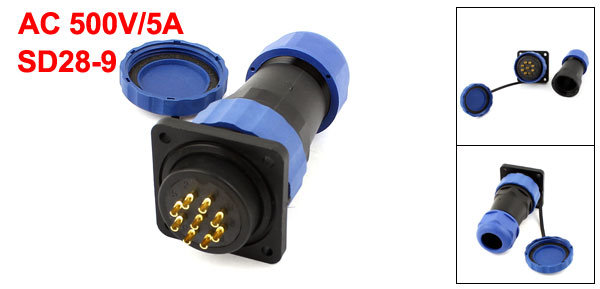 Product Name Waterproof Aviation Connector Model SD28-9 Waterproof Level IP68 Rated Current / Voltage AC 500V/5A Withstand Voltage AC 1500V Panel Cutout Diameter 28mm Cable Range 10-16mm Terminals 9 Pins Total Size 36 x 92mm / 1.4" x 3.6" (D*L) Flange Hole Spacing 30 x 30mm / 1.2" x 1.2" (L*W) Square Size 38 x 38mm / 1.5" x 1.5" (L*W) Material Plastic, Brass Color Blue, Black, Gold Tone Weight 70g Package Content 1 x Waterproof Aviation Connector - Reviews