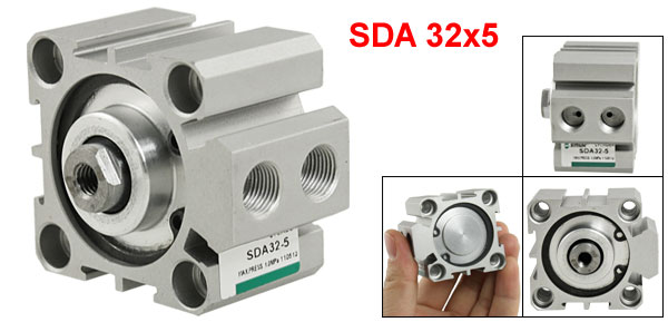 Product Name Thin Air Cylinder Model SDA 32x5 Action Type Double Action Bore 32m / 1.26" Stroke 5mm / 0.197" Port Dia.(Approx) 8mm / 0.31" Center Threaded Hole Dia.(Approx.) 5mm / 0.197" Mounting Thread Dia.(Approx.) 5mm/ 0.197" Max. Pressure 1.0Mpa Overall Size(Approx.) 50 x 44 x 35mm / 2" x 1.7" x 1.4"(L*W*H) Material Metal Weight 126g Package Content 1 x Thin Air Cylinder - Reviews