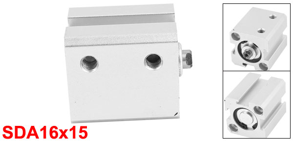 Product Name Air Cylinder Model SDA 16x15 Action Type Double Action Bore 16mm Stroke 15mm Port Dia(Approx) 4mm / 0.16" Center Threaded Hole Dia(Approx) 3mm / 0.12" Amounting Hole Dia. 6.8mm/ 0.27" Pressure 0.15-0.7Mpa Overall Size(Approx) 40 x 29 x 29mm / 1.6" x 1.1" x 1.1"(L*W*H) Material Aluminum Alloy Color Silver Tone Weight 69g Package Content 1 x Air Cylinder - Reviews