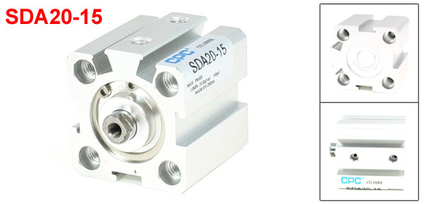 Product Name Air Cylinder Model SDA20-15 Action Type Double Action Bore 20mm Stroke 15mm Max Presssure 1.0Mpa / 10.2Kg/cm² / 145PSI Rod Diameter 10mm / 0.4"' Rod Thread Diameter 4mm / 0.15" Air Hole Diameter 4mm / 0.15" Mounting Hole Diameter 6mm / 0.23" Mounting Hole Distance(center to center) 26mm / 1"
