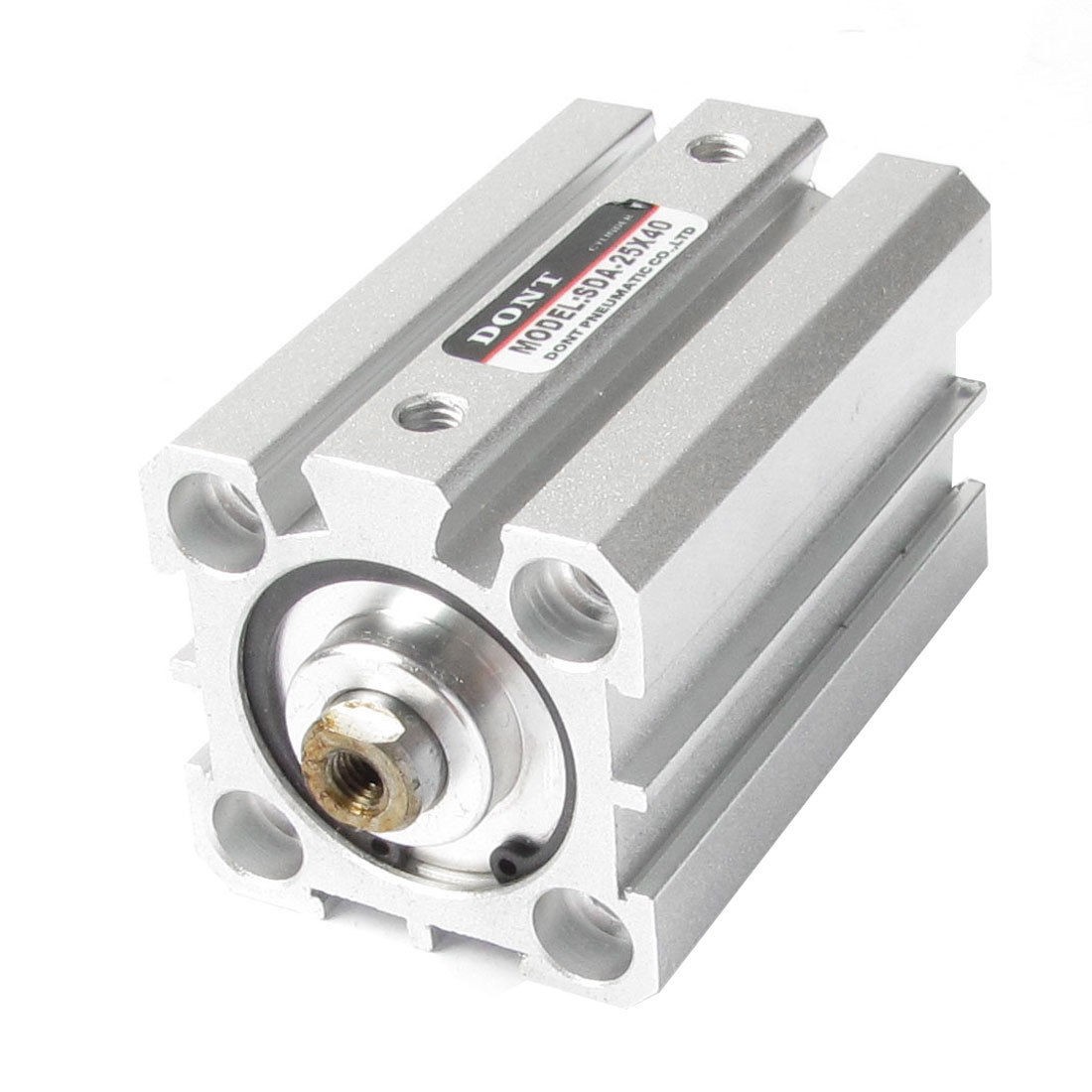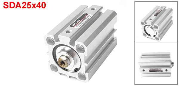 SDA25x40 25mm Bore 40mm Stroke Dual Action Thin Air Cylinder Silver Tone