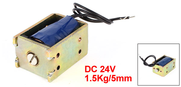 Product Name Solenoid Electromagnet Model SDO-0837S-24V32 Material Metal, Electronic Parts Rated Voltage DC 24V Resistance 144Ohm Action Form Push Type Solenoid Type Open Frame Force 1.5Kg Stroke 5mm Body Size 37 x 25 x 20mm/1.5'' x 1'' x 0.8'' (L*W*H) Rod Dia 8mm / 0.3" Cable Length 10cm/4'' Net Weight 94g Package Content 1 x Solenoid Electromagnet - Reviews