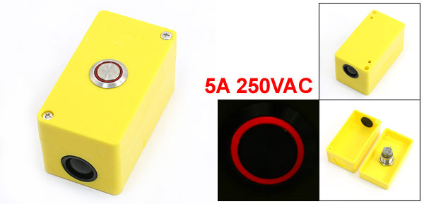 Product Name Push Button Station Action Type Latching Action Contact Type SPDT 1NO 1NC Working Voltage & Current 5A 250VAC Max. Withstand Current 19A Light Voltage 12V Light Color Red Button Dia 2.3cm/0.9" Overall Size 9 x 5 x 5cm/3.5" x 2" x 2"(L*W*H) Wire Hole Dia 20mm/0.78" Mounting Hole Dia 4mm/0.16" Mount Hole Distance 60mm x 35mm/2.4" x 1.4"(L*W) Material Plastic, Metal Color Red, Yellow, Silver Tone Net Weight 72g Package Content 1 x Push Button Station - Reviews