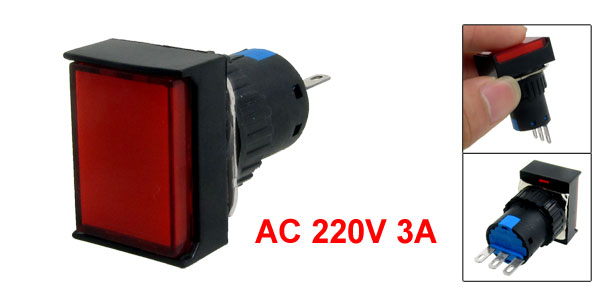 Product Name Push Button Switch Action Type Self Locking Contact Type 1NO 1NC Rating Voltage AC 220V 3A Terminals Quanlity 3 Pins Mounting Hole Diameter 15mm/ 0.6" Button Size 21 x 15mm/ 0.8" x 0.6"(L*W) Terminals Pitch 5mm/ 0.2" Overall Size 23 x 18 x 39mm/ 0.91" x 0.71" x 1.54"(L*W*H) Material Plastic, Metal Color Red, Black Weight 9g Package Content 1 x Push Button Switch - Reviews