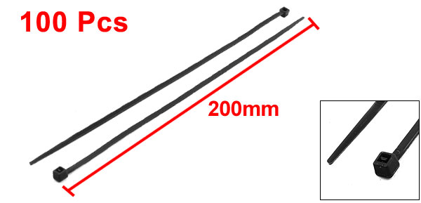 Main Color Black Net Weight 58g Country of Manufacture CHINA Package Content 100Pcs(+/- 2%) x Cable Tie Each Size 2.8 x 200mm/ 0.11" x 8"(W*L) Type Self-Locking Material Nylon - Reviews