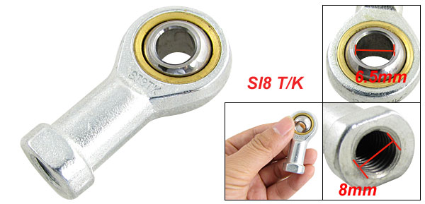 Product Name Rod End Bearing Connector Type Female Female Socket Dia 6.5mm/ 0.25" Ball Hole Diameter 8mm/ 0.3" Rod Diameter 12mm / 0.47" Total Size 49 x 24 x 16.3mm/ 1.9" x 0.94" x 0.64" (L*W*T) Material Metal Main Color Silver Tone Weight 47g Package 1 x Rod End Bearing - Reviews