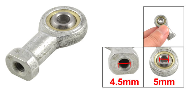 Product Name Rod End Bearing Type SI5 T/K Connector Type Female Female Socket Dia 4.5mm/ 0.18" Ball Hole Diameter 5mm/ 0.2" Rod Diameter 9mm / 0.37" Total Size 37 x 18 x 8mm/ 1.5" x 0.71" x 0.31" (L*W*T) Material Metal Main Color Silver Tone Weight 22g Package 1 x Rod End Bearing - Reviews