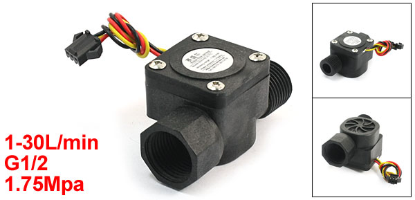 Product Name Hall Flow Sensor Water Control Model SEN-HZ21FC Type Hall Effect Max Switch Current & Voltage 10mA, DC3-18V Working Range 1-30L/min Thread Dia G1/2 Max. Water Pressure 1.75Mpa Insulation Resistance 100M Ohm(Min.) Total Size 70 x 37 x 37mm/ 2.8" x 1.5" x 1.5"(L*Max.W*H) Cable Length 13cm/ 5.1" Main Material Plastic Color Black Weight 60g Package Content 1 x Hall Flow Sensor Water Control - Reviews