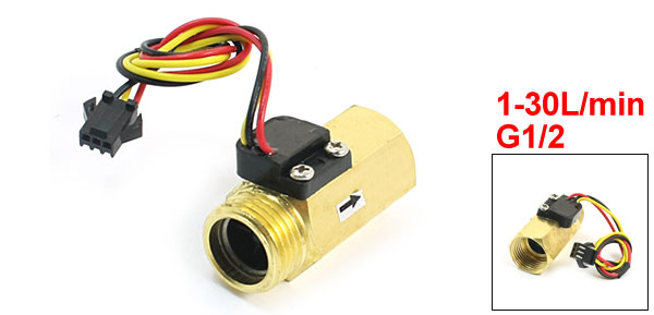 Product Name Water Flow Sensor Switch Model SEN-HZ21FH Type Hall Effect Max Switch Current & Voltage 10mA, DC3-18V Working Range 1-30L/min Male Female Port Thread Dia G1/2 Max. Pressure 1.75Mpa Insulation Resistance 100M Ohm(Min.) Total Size 50 x 30mm/ 2" x 1.2"(L*Max.W) Cable Length 21cm/ 8.3" Main Material Copper Color Gold Tone, Black Weight 97g Package Content 1 x Water Flow Sensor Switch - Reviews