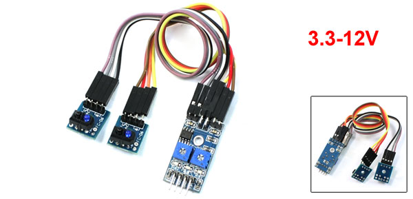 Product Name Track Sensor Module Output Channel 2 Working Voltage 3.3-12V Detect Distance 1-8mm Focal Distance 2.5mm PCB Size 32 x 17mm/ 1.3" x 0.67" (L*W) Cable Length 21cm/ 8.3" Hole Size 3mm/ 0.12" Material Electric Part Net Weight 14g Package Content 1 x Track Sensor Module - Reviews