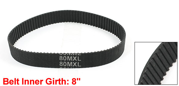 Product Name Timing Belt Belt Model NO 80MXL Number of Teeth 100 Pitch (P) 2.032mm / 0.08" Tooth Height (th) 0.5mm / 0.02" Tooth Width(tw) 0.8mm / 0.031" Belt Thickness(t) 1.1mm / 0.043" Belt Width 10mm / 0.39" Belt Inner Girth 203.3mm / 8" Material Rubber, Polyurethane Composite Material Color Black Weight 4g Package Content 1 x Timing Belt - Reviews