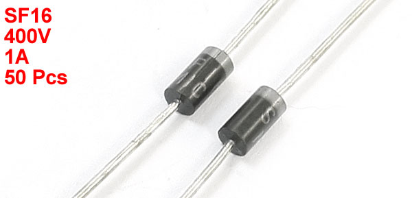 Product Name Super Fast Recovery Diodes Model SF16 Max Repetitive Peak Reverse Voltage 400V Average Forward Current 1A Lead Size(Each Side) 0.7 x 28mm/0.08" x 1.1"(D*L) Body Dimension 2.5 x 5mm/0.1" x 0.2"(D*L) Color As Picture Shown Weight 13g Package Content 50Pcs(±2%) x Super Fast Recovery Diodes - Reviews