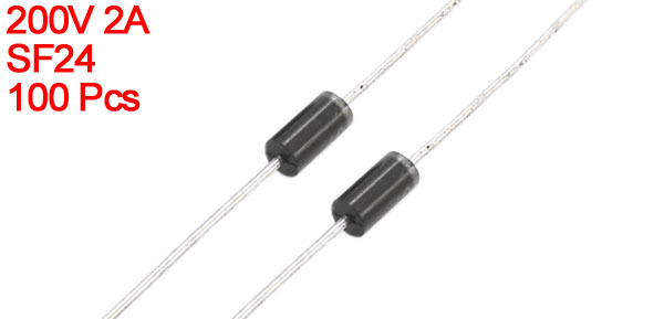 Product Name Super Fast Recovery Diodes Model SF24 Max Repetitive Peak Reverse Voltage 200V Average Forward Current 2A Lead Size(Each Side) 0.7 x 26mm/0.08" x 1"(D*L) Body Dimension 3 x 6mm/0.12" x 0.24"(D*L) Color As Picture Shown Weight 34g Package Content 100Pcs(±2%) x Super Fast Recovery Diodes - Reviews