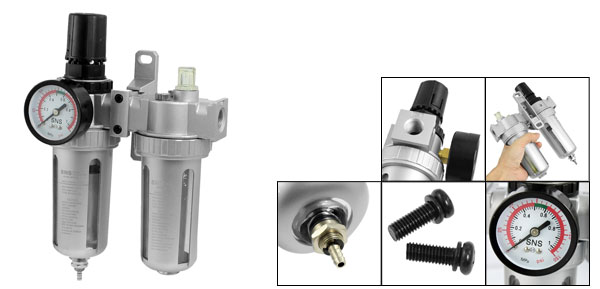 Product Name Air Source Treatment Unit Model SFC-300 Material Metal, Plastic Working Medium Air Adapter Diameter 3/8" PT Gauge Connector Diameter 9.6mm/ 0.38" Gauge Range 0-1.0MPa Total Size 16 x 7 X 23mm / 6.3" x 2.8" x 9"(L * W * H) Gauge Size 52 x 32mm / 2" x 1.3" (D * T) Color Black, Silver Tone Weight 800g Package Content 1 x Air Source Treatment Unit