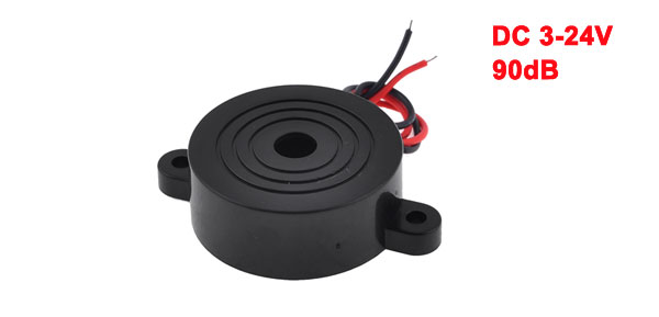 Product Name Electronic Alarm Buzzer Model No. SFM-27 Sound-making Type Continuous Sound Rated Voltage DC 3-24V Sound Pressure 90dB Overall Size 6 x 4 x 1.6mm / 2.4" x 1.6" x 0.6"(L*W*T) Mounting Hole Diameter 3.8mm / 0.15" Mounting Hole Distance 45mm / 1.8" Wire Length 13.5cm / 5.2" External Material Plastic Color Black Weight 14g Package Content 1 x Electronic Alarm Buzzer