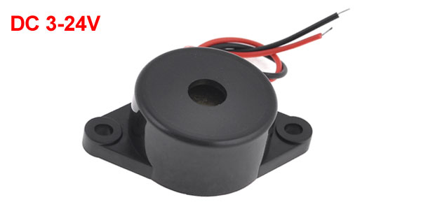 Product Name Electronic Alarm Buzzer Model No. SFM-27 Sound-making Type Continuous Sound Rated Voltage DC 3-24V Sound Pressure 80dB Overall Size 4.8 x 3 x 1.5mm / 1.9" x 1.2" x 0.6"(L*W*T) Mounting Hole Diameter 3.8mm / 0.15" Mounting Hole Distance 35mm / 1.4" Wire Length 10.5cm / 4.1" External Material Plastic Color Black Weight 8g Package Content 1 x Electronic Alarm Buzzer