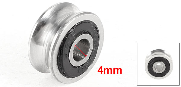 Product Name Groove Guide Pulley Ball Bearing Type SG10/ 604UU Material Metal, Rubber Outer Diameter 13mm / 0.51" Inner Diameter 4mm/ 0.16" Thickness 4mm/ 0.16" U groove deepness 1mm U groove width 2.1mm Color Silver Tone, Black Weight 4g Package Content 1 x Groove Guide Pulley Ball Bearing - Reviews