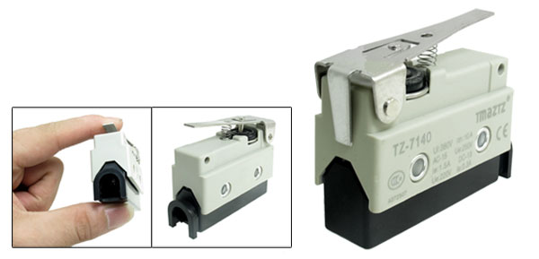 Product Name Limit Switch Model No. TZ-7140 Actuator Action Momentary Actuator Type Short Hinge Lever Contact Type 1 NO, 1 NC, (SPDT) Ui 380V Ith 10A AC-15 Ue: 250V, le: 1.5A DC-13 Ue: 220V, le: 0.3A Actuator Size 5.3 x 1.6cm / 2.1" x 0.6"(L*W*) Hole Dia 0.43cm / 0.17" Main Body Size 5.4 x 2.1 x 3.7cm / 2.1" x 0.8" x 1.5"(L*W*H) Overall Height 4.6cm / 1.8" Material Metal, Plastic & Rubber Color As Picture Show Net Weight 48g Package Content 1 x Limit Switch - Reviews