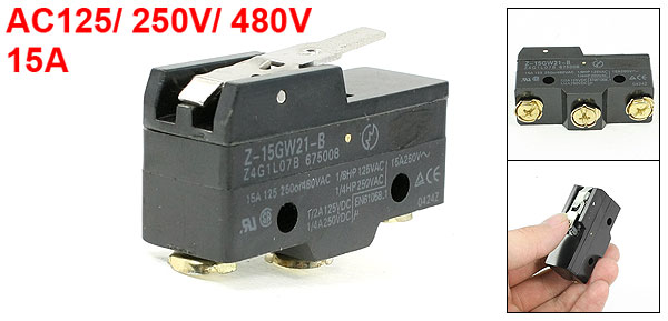 Product Name Limit Switch Model No. Z-15GW21-B Terminal Style 3 Screw Terminal Actuator Type Long Straight Hinge Lever , Automatic Reset Rating & Voltage AC125/ 250V/ 480V, 15A Power 1/8HP/ AC125V, 1/4HP/ AC250V Level Total Length 4cm/ 1.5" Fixing Holes Dia. 0.4cm / 0.16“ Hole Center Point Distance 2.5cm / 0.98" Switch Body Size 5 x 1.8 x 2.8cm / 1.97 x 0.7 x 1.1"(L*W*H) Body Main Color Black Net Weight 30g Package Content 1 x Limit Switch - Reviews