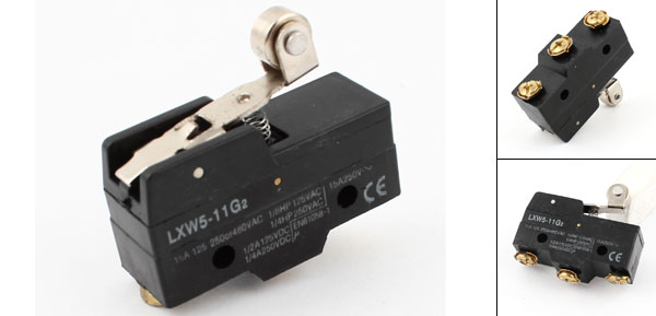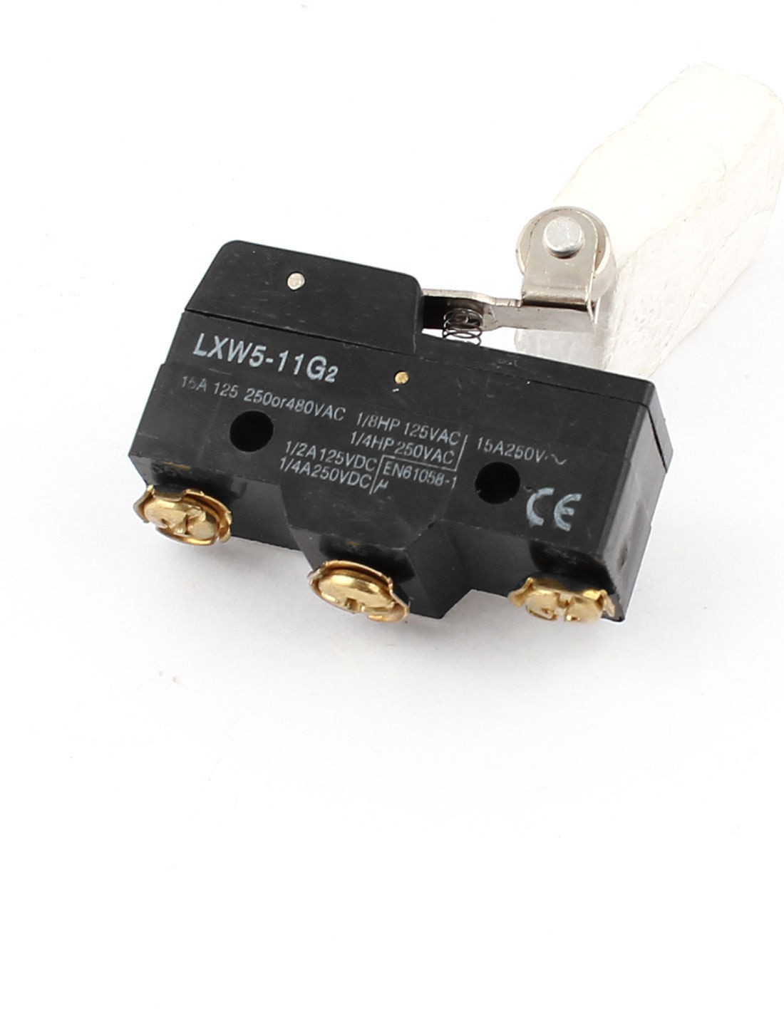 1/2A DC 125V Main Color Black 1/8HP AC 125V Brand DMiotech Terminals 3 Terminals Action Type Momentary Actuator Type Roller Plunger Country of Manufacture CHINA Model LXW5-11G2 Material Plastic, Metal Contact Type SPDT 1/4HP AC 250V Product Name Limit Switch Net Weight 47g Package Content 1 x Limit Switch Rating AC 480V/250V/125V 15A 1/4A DC 250V Level Length 4cm/1.6" Size 5 x 3 x 1.8cm/2" x 1.2" x 0.7"(L*W*H) - Reviews