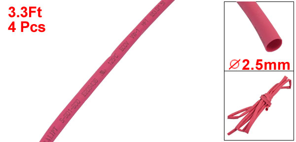 Shrink Ratio 2/1 Red Insulated Heat Shrinkable Tube 2.5mm 3.3ft 1m 4Pcs
