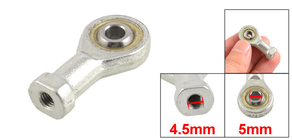 Product Name Rod End Bearing Type SIL5 T/K Connector Type Female Female Socket Dia 4.5mm/ 0.18" Ball Hole Diameter 5mm/ 0.2" Rod Diameter 9mm / 0.37" Total Size 37 x 18 x 8mm/ 1.5" x 0.71" x 0.31" (L*W*T) Material Metal Main Color Silver Tone Weight 21g Package 1 x Rod End Bearing - Reviews