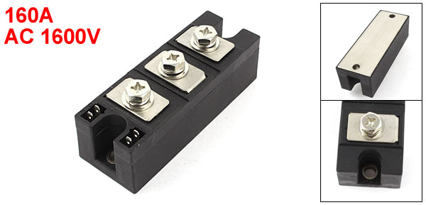 Product Name Thyristor Module Model MTC-160A Max. Average Forward Current 160A Max. Working Peak Reverse Voltage AC 1600V Terminals 3 Mount Hole Diameter 6.5mm/ 0.25" Mount Hole Distance 80mm / 3.15"(Center to Center) Total Size 95 x 35 x 38mm / 3.74" x 1.4" x 1.5" (L*W*H) Material Metal, Plastic Color Black, Silver Tone Net Weight 220g Package Content 1 x Thyristor Module - Reviews