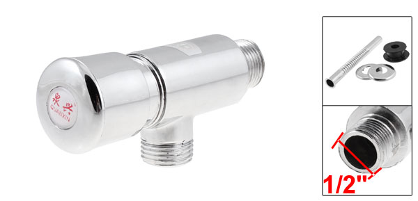 Silver Tone 1/2" Male Thread Stop Self Closing Delay Angle Valve