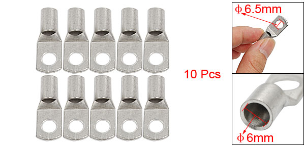 Product Name Copper Cable Lug Model SC16-6A Material Metal Thread Section 16mm² Fit Bolt Diameter 6.5mm / 0.26" Internal Diameter 6mm / 0.24" Tip Width 11mm / 0.4'' Total Length 30mm / 1.2'' Main Color Silver Tone Weight 36.8g Package Content 10 x Copper Cable Lug - Reviews