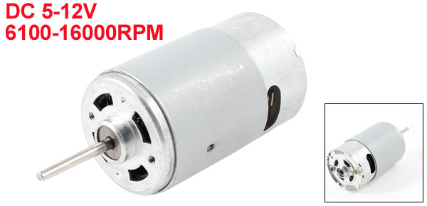 Product Name Micro Motor Rated Voltage DC 5-12V No-load Speed 6100-16000RPM Shaft Dia 3mm / 0.12" Shaft Length 27mm / 1.1" Body Size 65 x 37mm / 2.6" x 1.5" (L*D) Total Length 92mm / 3.6" Main Color Silver Tone Material Metal, Plastic Weight 145g Package 1 x Micro Motors - Reviews