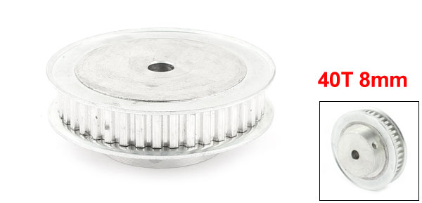 Silver Tone 8mm Bore 5mm Pitch 40T Aluminum Alloy Synchronous Timing Belt Pulley
